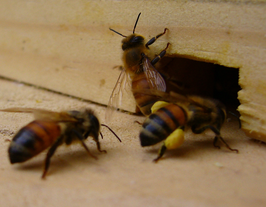 Because I couldn’t dig down into the hives as far as I wanted to go, I made the decision to give the girls some sugar water to make sure they’ve got what they need for the next few weeks. They won’t take sugar if they still have honey so there’s no harm in the double duty. I did see them bringing in pollen on their hind legs (they have pollen sacks / baskets on their back legs that they fill while out collecting – looks like they’re bringing home little yellow tic-tacs) which is a great sign that the queen has started laying. Fingers crossed our newby worries are behind us and we’re at the start of a banner honey year! I’ll know more as soon as Chris is back with his smooth talking ways to unruffle a few thousand female feathers and give us a chance to really get into the hives and see what they’re up to… hey, his charms worked on me when we were dating.