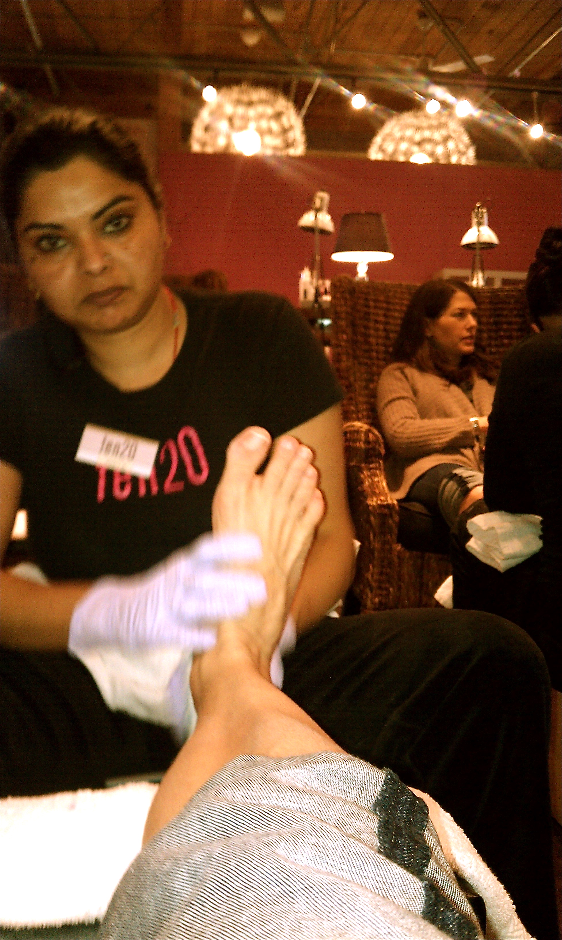 So I tried to take a photo of Anita's pissed expression while she was working on my heels but the flash went off and she gave me the evil eye for taking a photo (as seen above). I feigned ABSOLUTE SHOCK (!) about accidentally hitting the wrong button and taking a photo but she read right through me. Heather (Owner of Calluna Events) is in the background.